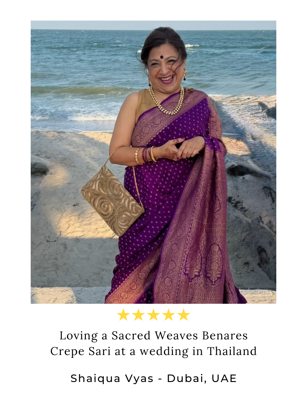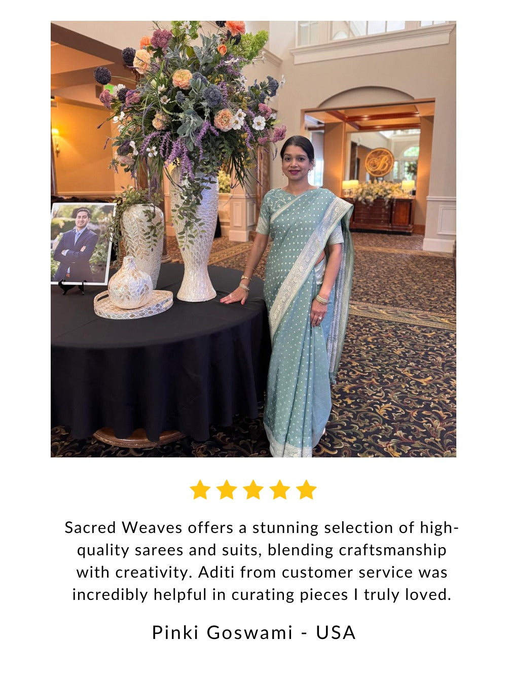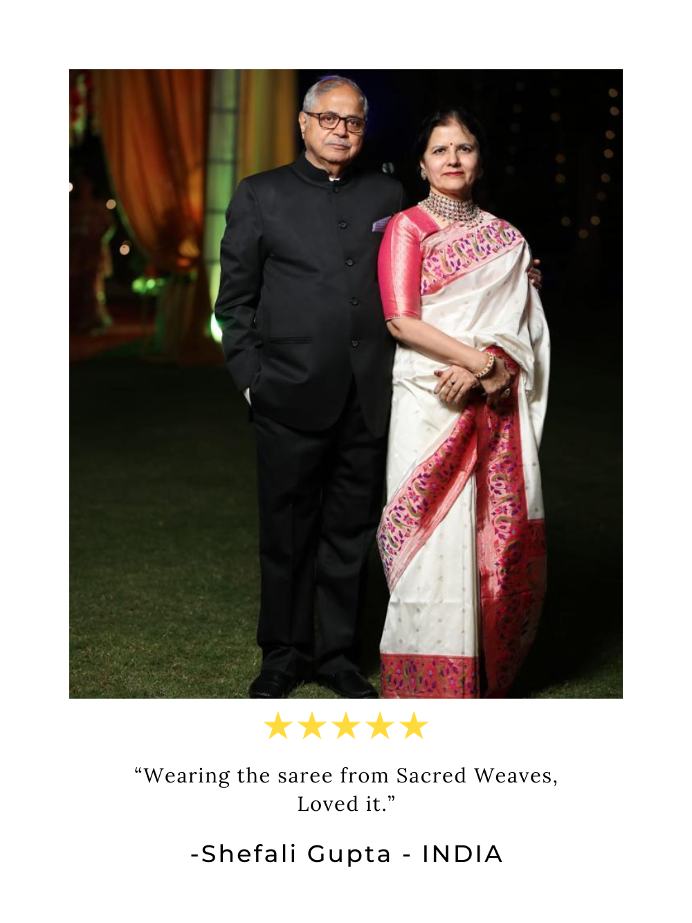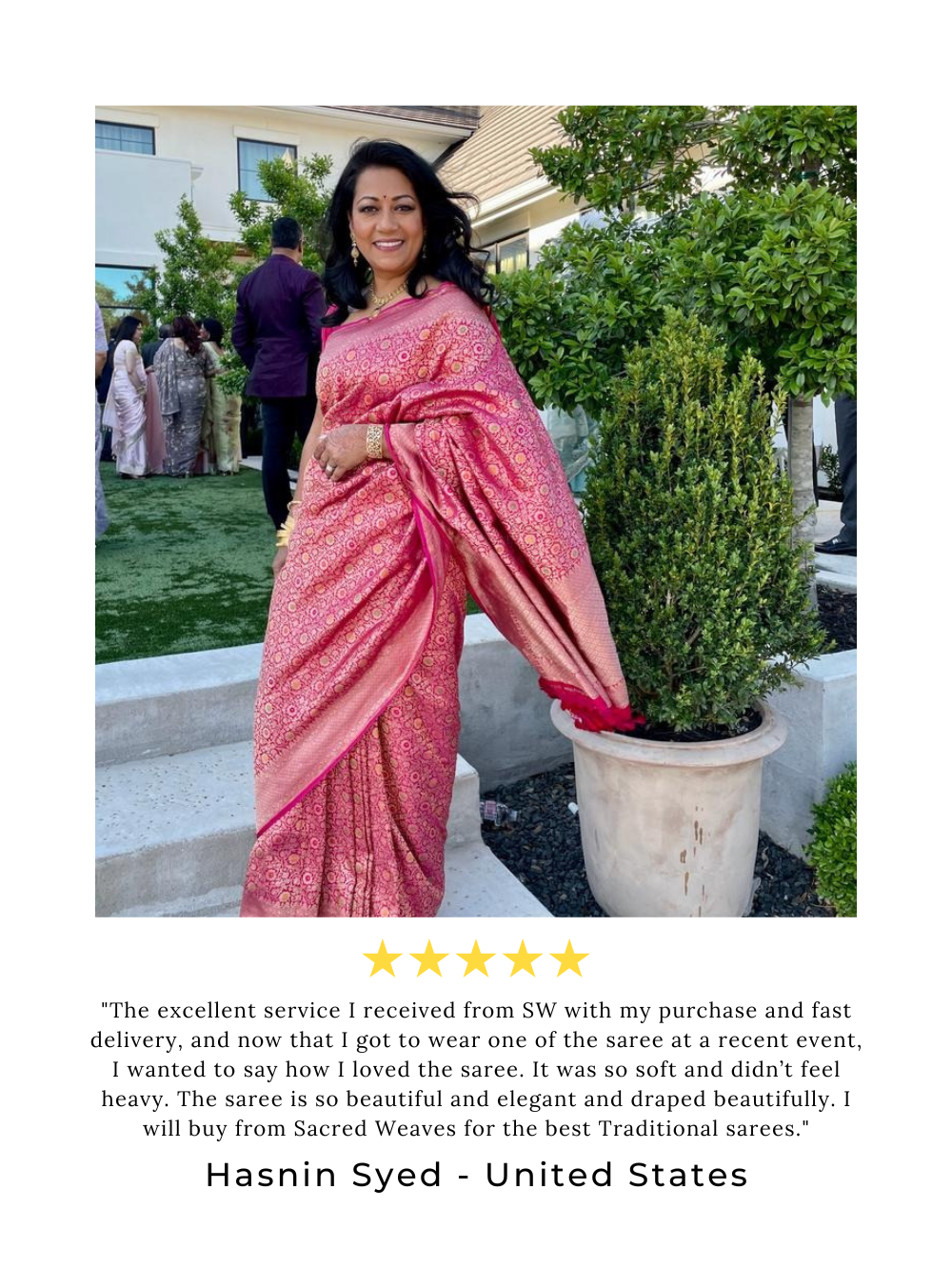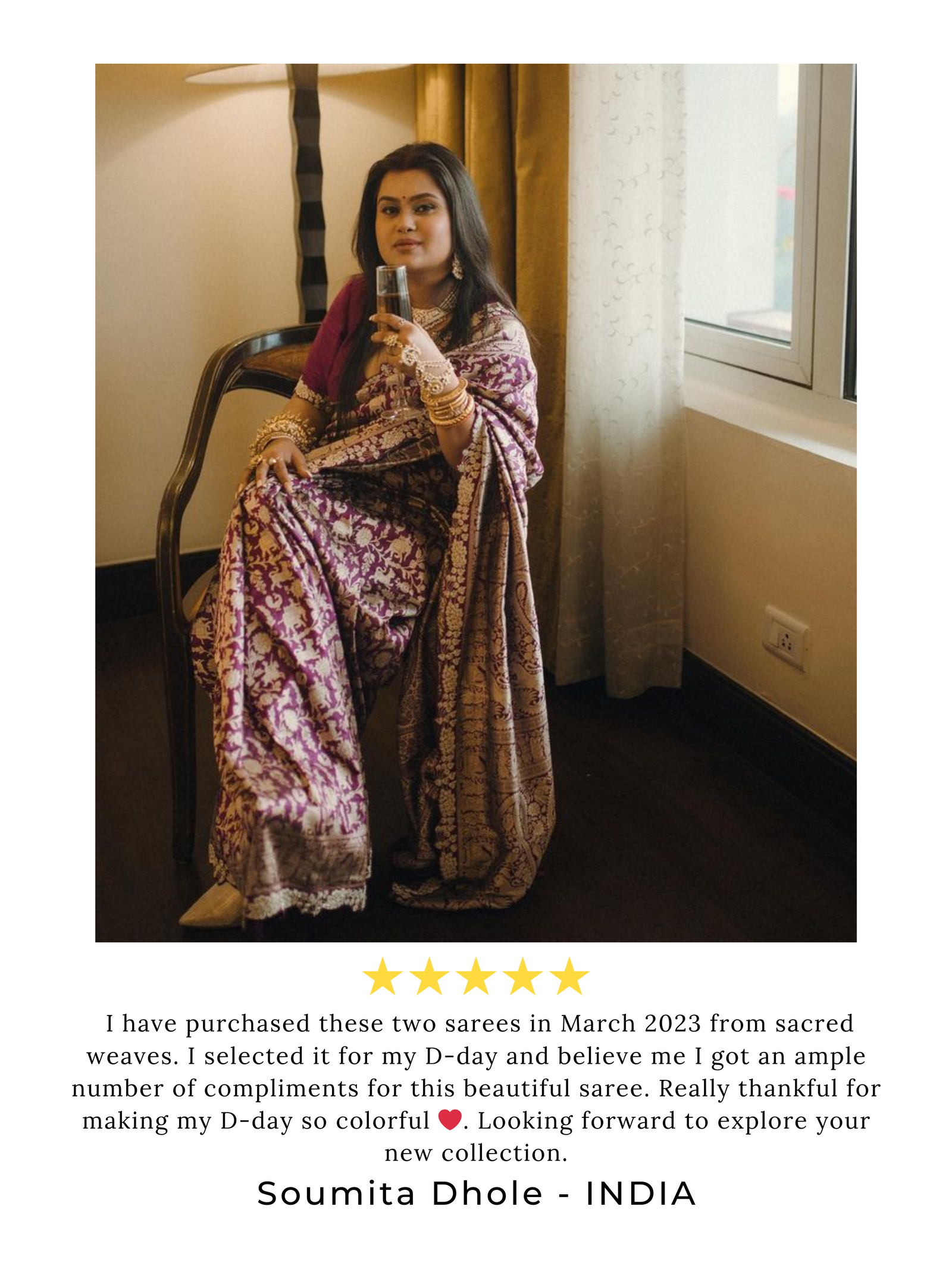 We hope you're enjoying your beautiful Banarasi sarees from Sacred Weaves! It’s always a joy to be a part of your special occasions and memorable moments.