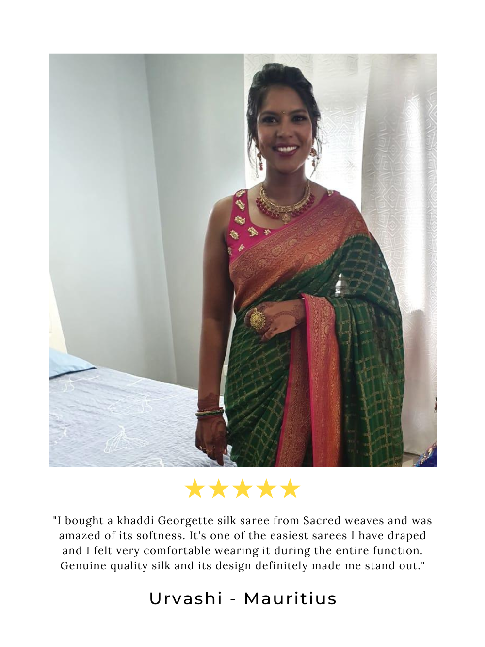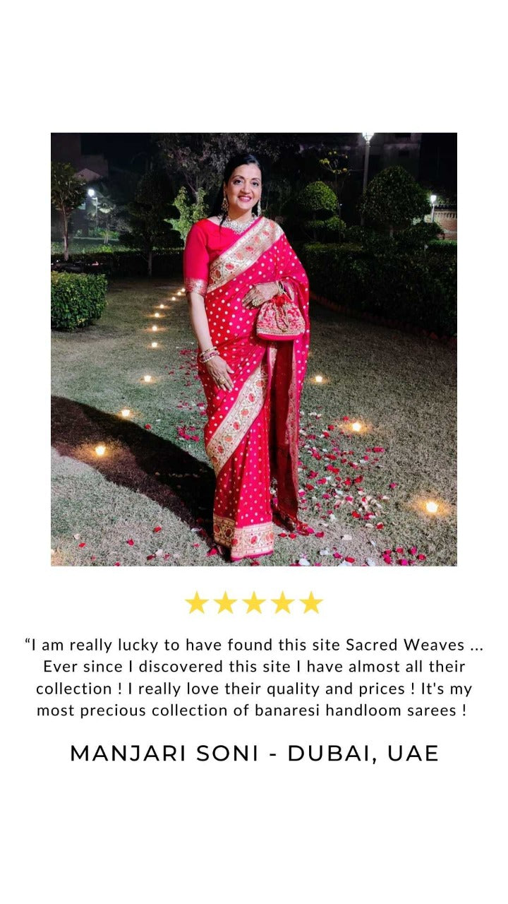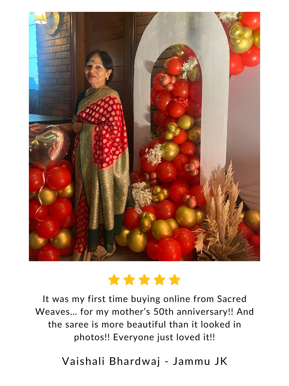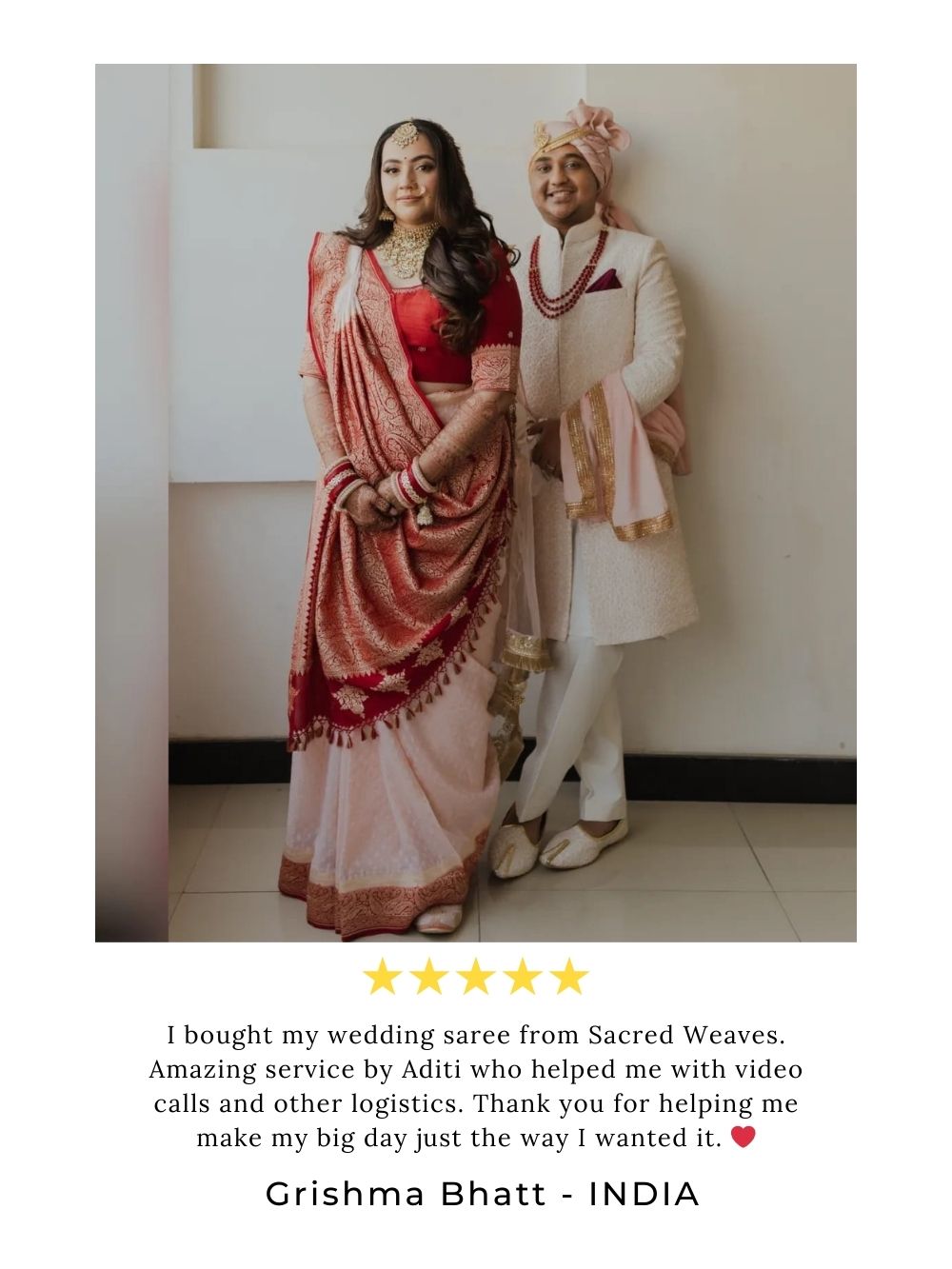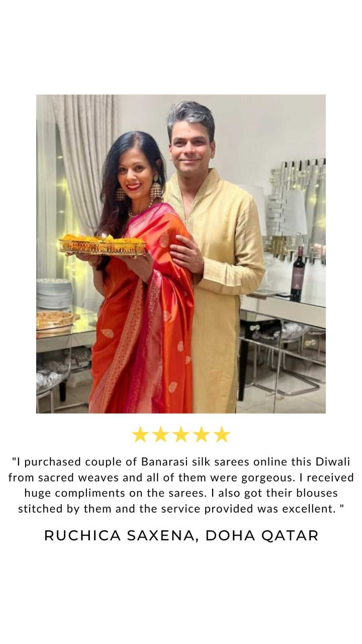 We hope you're enjoying your beautiful Banarasi sarees from Sacred Weaves! It’s always a joy to be a part of your special occasions and memorable moments.