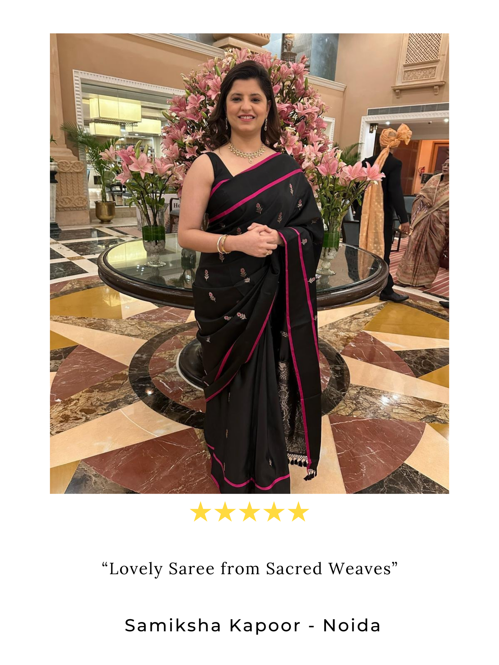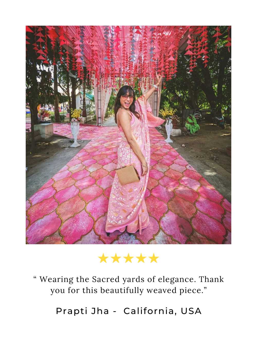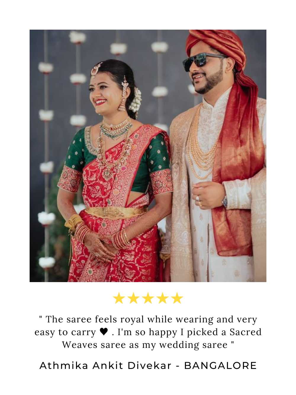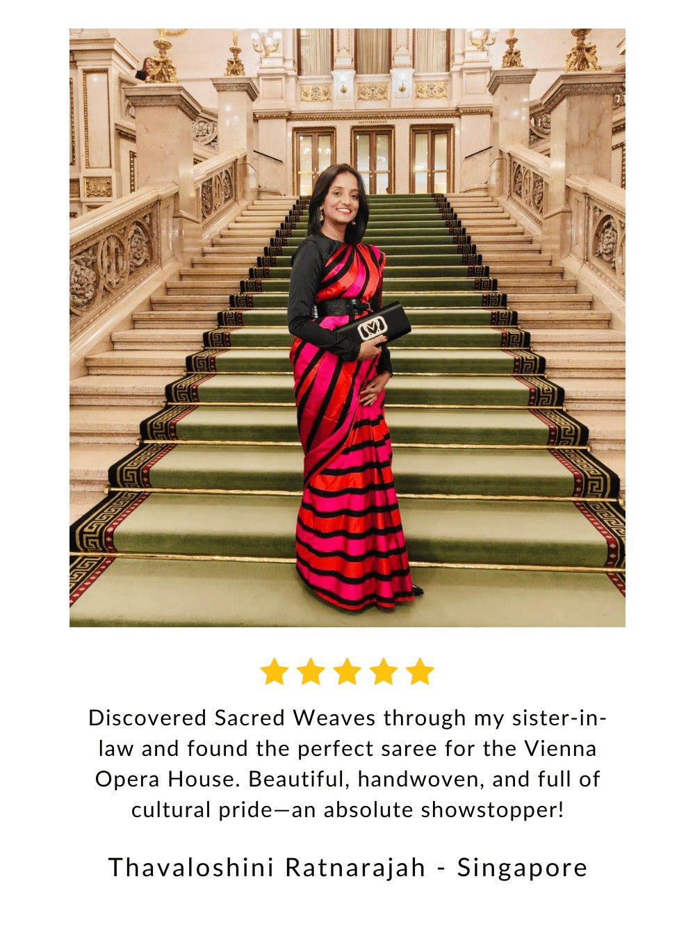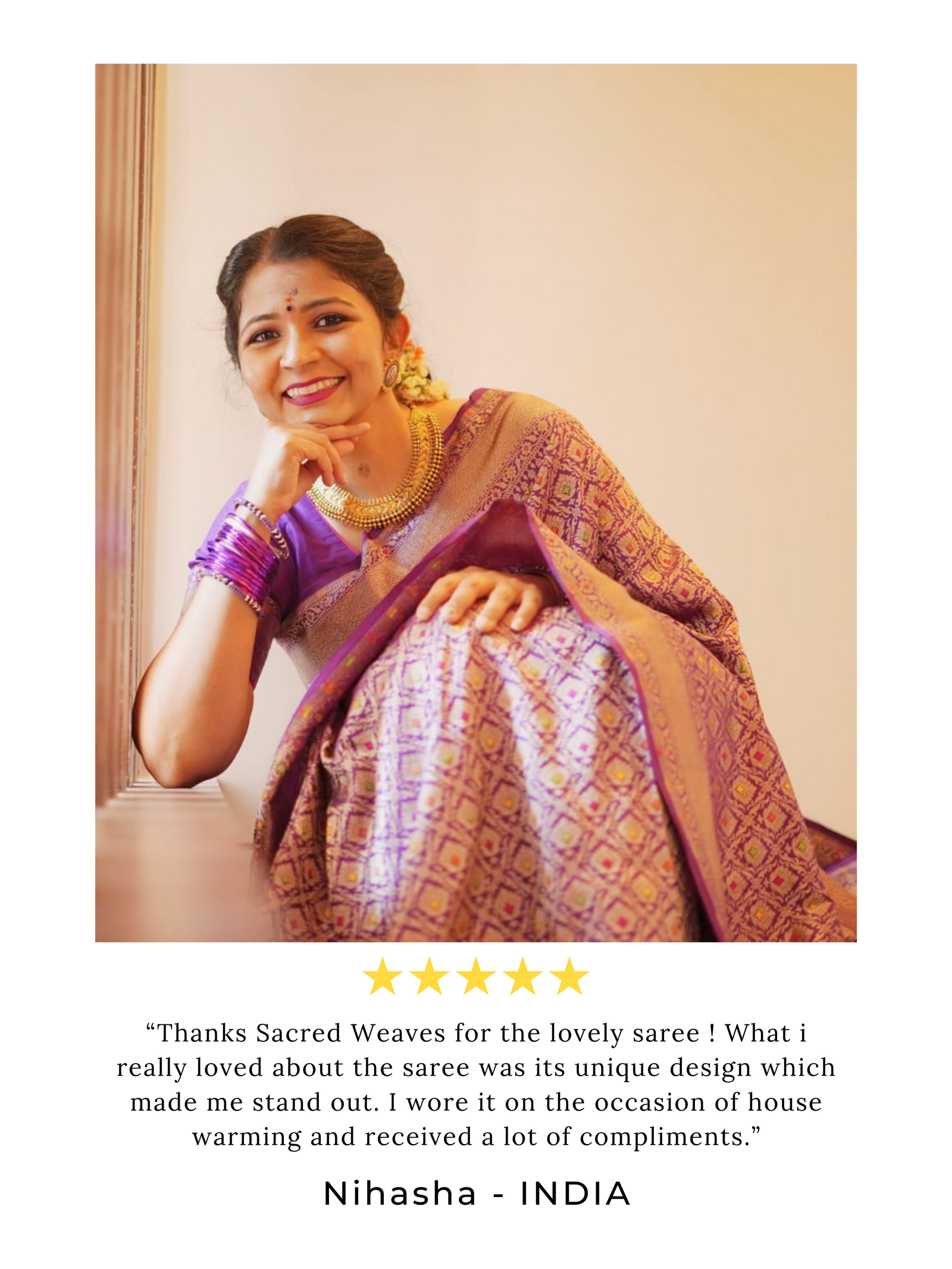 We would love to see how you style your Sacred Weaves sarees! Whenever you wear any of the sarees you've purchased from us—whether it's for a festive celebration, wedding, or any special event—we kindly request you to click a picture or record a video of yourself and share, tag & mention us on your Instagram post.