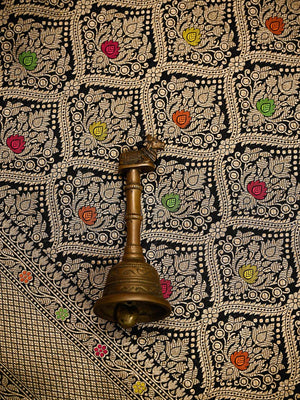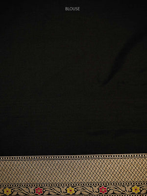 A Beautiful black color pure katan silk Banarasi saree with gold zari floral brocade all over. The entire saree has delicate gold zari meenakari work. It has a gold zari border and heavy brocade pallu. It's classic traditional Banarasi saree apt for all wedding celebrations. Handwoven luxury...