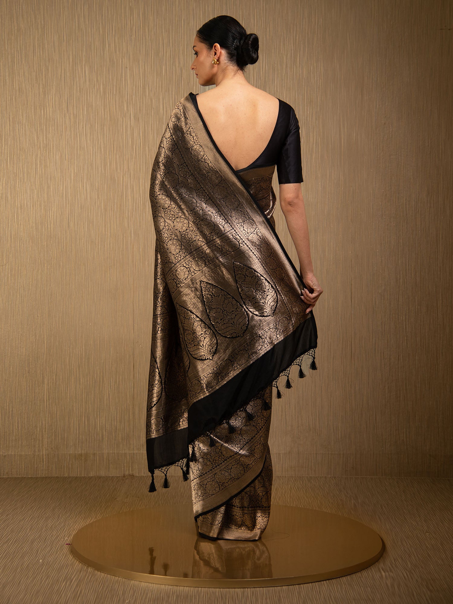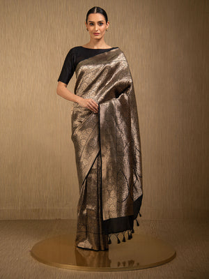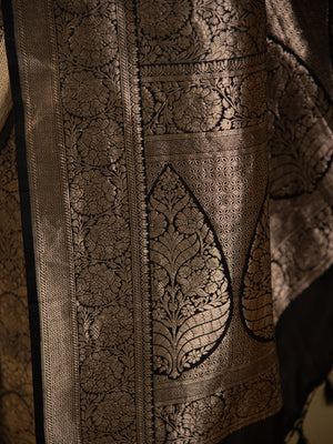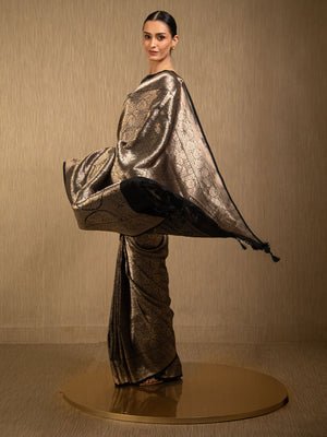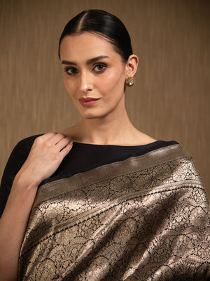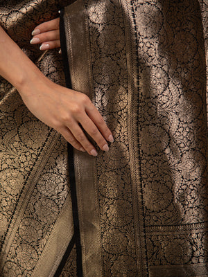 Directly crafted from the heart of Banaras, this Black Silk Brocade Handloom Banarasi Saree combines traditional artistry with modern elegance. Its soft brocade fabric offers effortless draping and lightweight comfort, making it an ideal choice for young women who appreciate timeless style with a contemporary touch. This saree’s rich texture and classic appeal make it perfect for both formal occasions and festive celebrations.