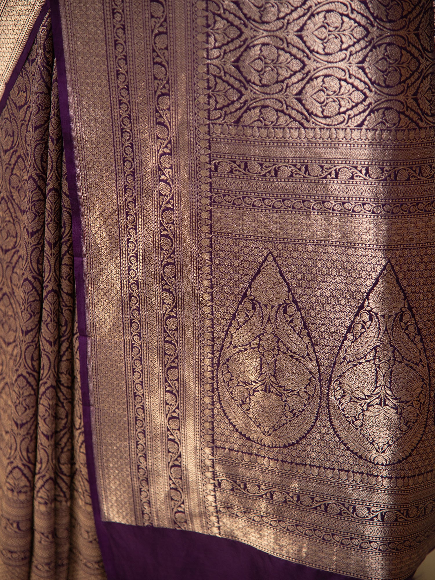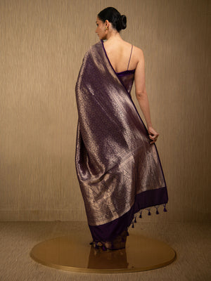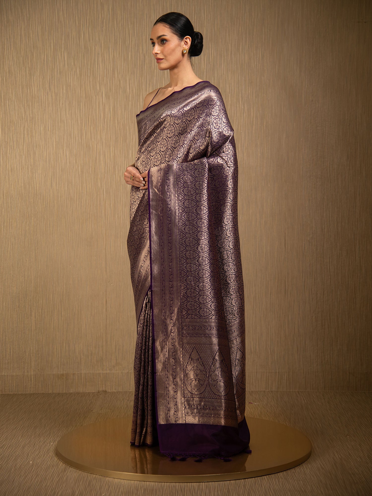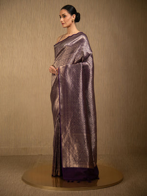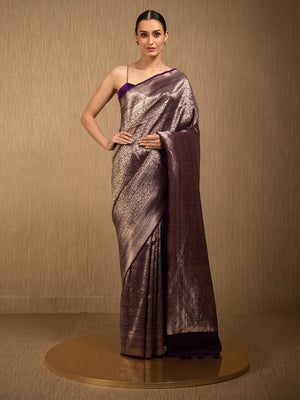 Directly crafted from the heart of Banaras, this purple silk brocade handloom Banarasi saree combines traditional artistry with modern elegance. Its soft brocade fabric offers effortless draping and lightweight comfort, making it an ideal choice for young women who appreciate timeless style with a contemporary touch. This saree’s rich texture and classic appeal make it perfect for both formal occasions and festive celebrations.