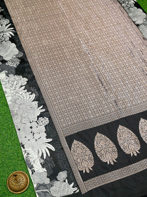 Directly crafted from the heart of Banaras, this Black Silk Brocade Handloom Banarasi Saree combines traditional artistry with modern elegance. Its soft brocade fabric offers effortless draping and lightweight comfort, making it an ideal choice for young women who appreciate timeless style with a contemporary touch. This saree’s rich texture and classic appeal make it perfect for both formal occasions and festive celebrations.