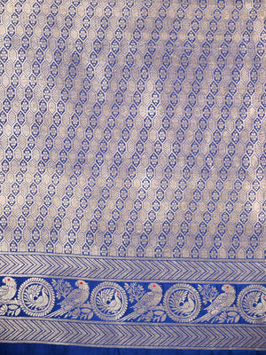 This elegant blue katan silk saree offers a lightweight and comfortable drape, making it an ideal choice for festivals and weddings. It features exquisite animal motifs along the border and a striking gold zari meenakari pallu, blending traditional craftsmanship with understated sophistication. The saree’s vibrant hues and minimalistic design create a graceful, refined look suitable for special occasions.