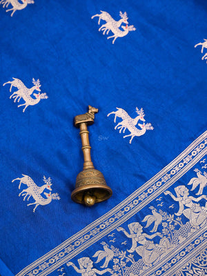 This elegant blue katan silk saree offers a lightweight and comfortable drape, making it an ideal choice for festivals and weddings. It features exquisite animal motifs along the border and a striking gold zari pallu, blending traditional craftsmanship with understated sophistication. The saree’s vibrant hues and minimalistic design create a graceful, refined look suitable for special occasions.