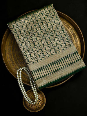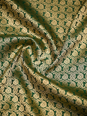 Directly crafted from the heart of Banaras, this Bottle Green Silk Brocade Handloom Banarasi Saree combines traditional artistry with modern elegance. Its soft brocade fabric offers effortless draping and lightweight comfort, making it an ideal choice for young women who appreciate timeless style with a contemporary touch. This saree’s rich texture and classic appeal make it perfect for both formal occasions and festive celebrations.