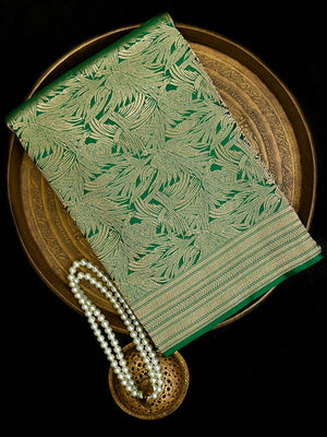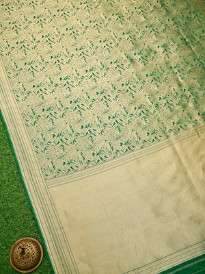Bottle Green Silk Shikargah Brocade Handloom Banarasi Saree