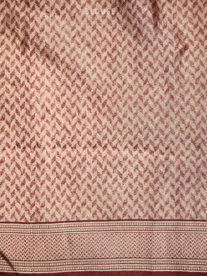 Pure organza sarees by Sacred Weaves in dark wine. It has a beautiful gold zari thin border. Saree has a gold zari booti all over. This charming handwoven organza saree in the daintiest of hues and beguiling zari work is apt for all celebrations. The Saree looks stunning and captivating on the drape.