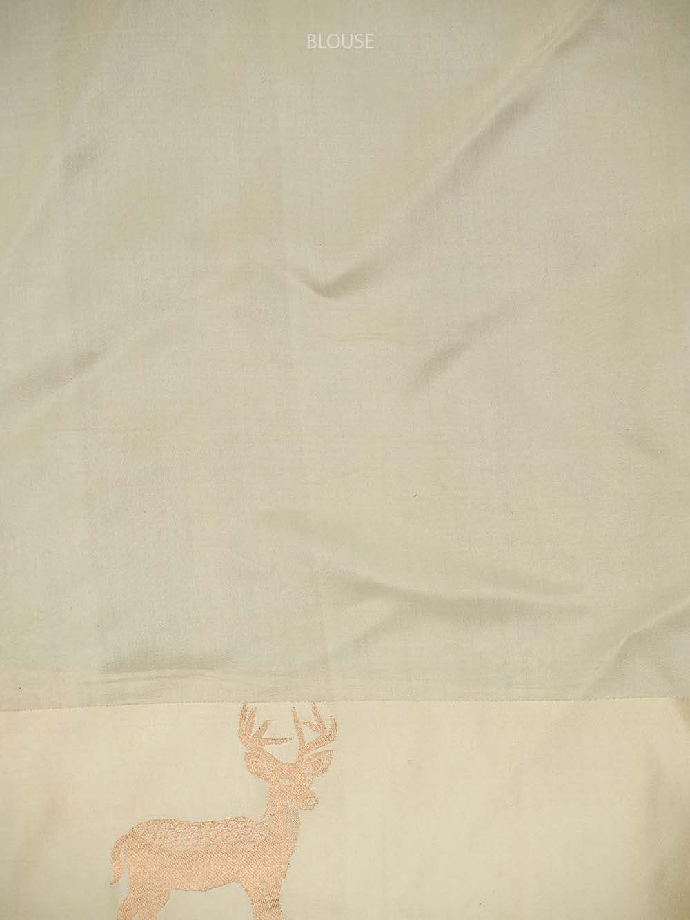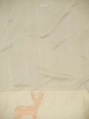 This elegant cream pure silk saree offers a lightweight and comfortable drape, making it an ideal choice for festivals and weddings. It features exquisite animal motifs along the border and a striking gold zari pallu, blending traditional craftsmanship with understated sophistication. The saree’s vibrant hues and minimalistic design create a graceful, refined look suitable for special occasions.