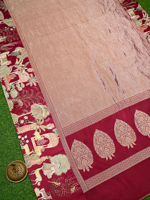 SW Assurance - With vows to sustainable fashion, this pure silk handloom product from Banaras is a masterpiece involving 159 hours of brilliance & sheer endeavor of our creative artisans. We pledge to cease child labor