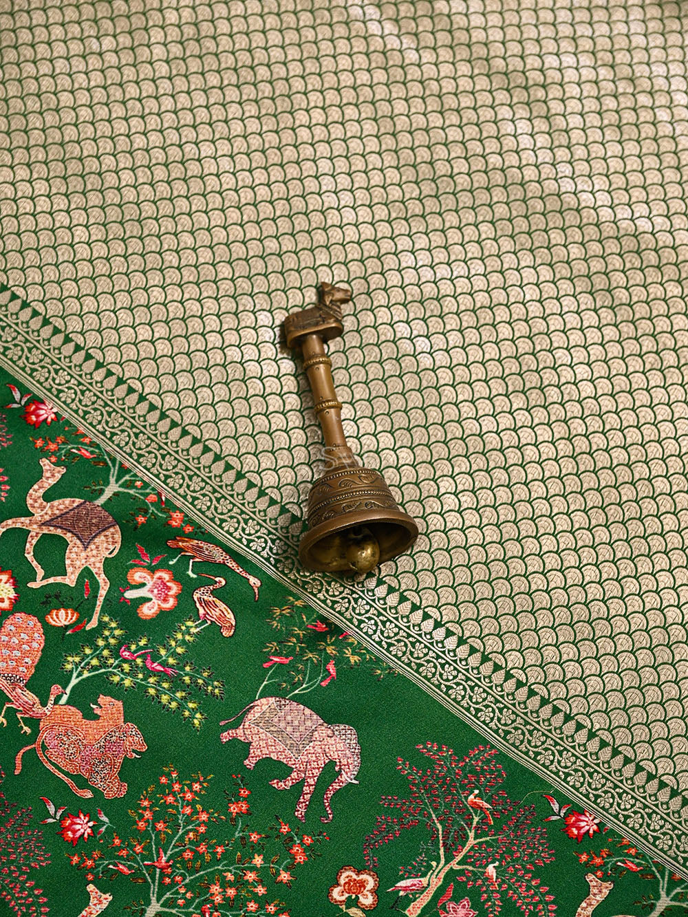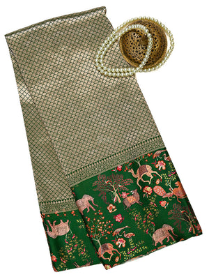 Directly crafted from the heart of Banaras, this Green Silk Brocade Handloom Banarasi Saree combines traditional artistry with modern elegance. Its soft brocade fabric offers effortless draping and lightweight comfort, making it an ideal choice for young women who appreciate timeless style with a contemporary touch. This saree’s rich texture and classic appeal make it perfect for both formal occasions and festive celebrations.