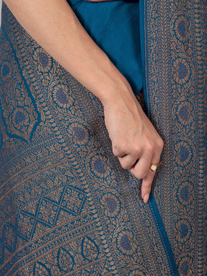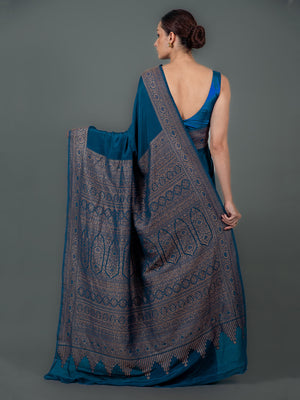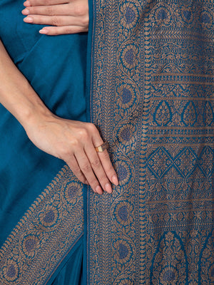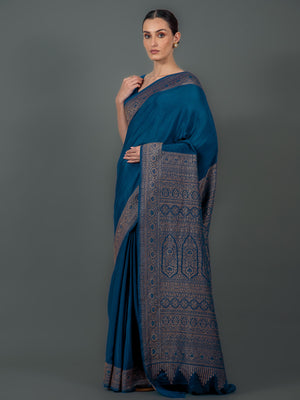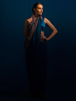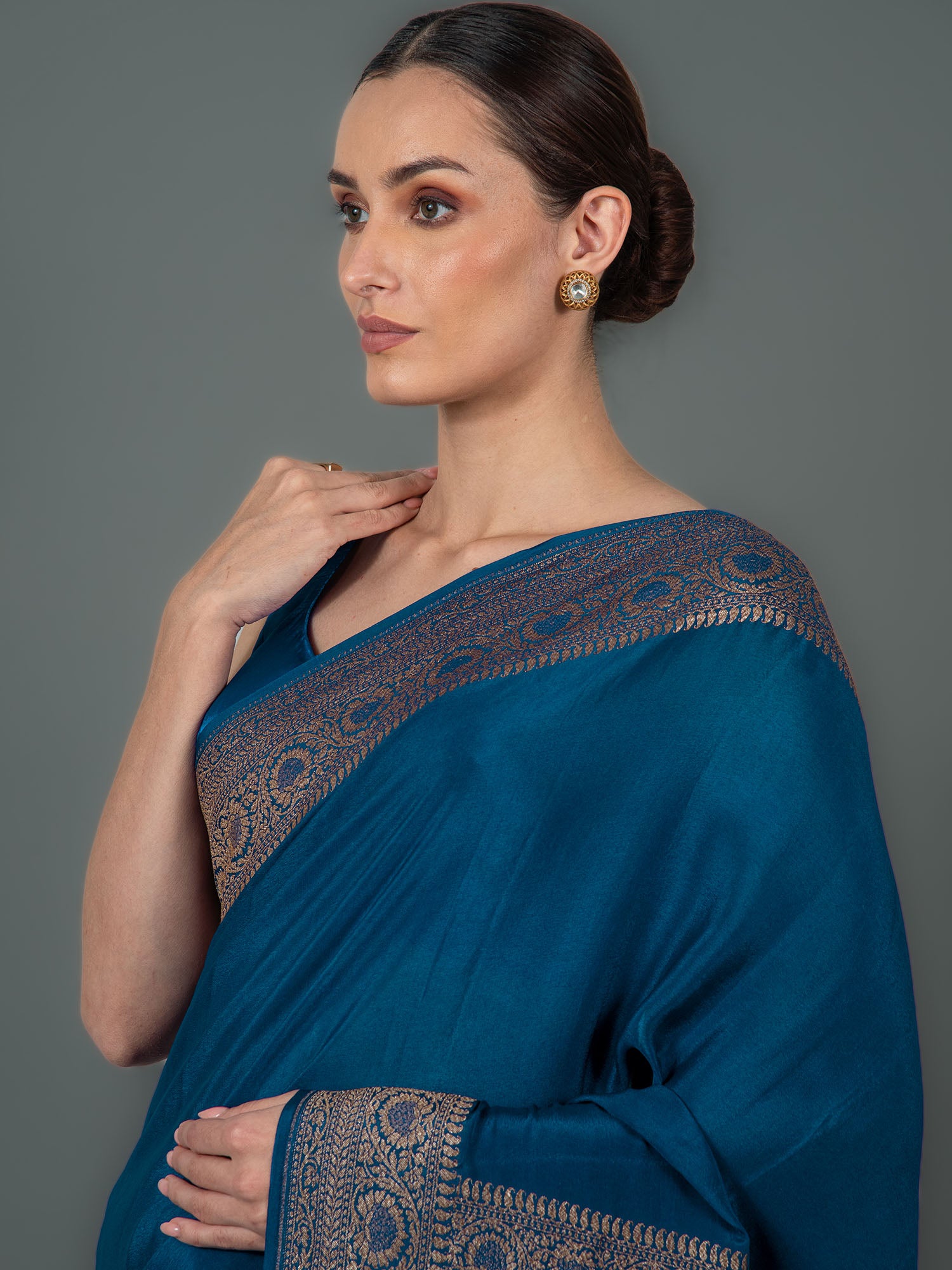 Midnight Blue Plain Crepe Silk Handloom Banarasi Saree