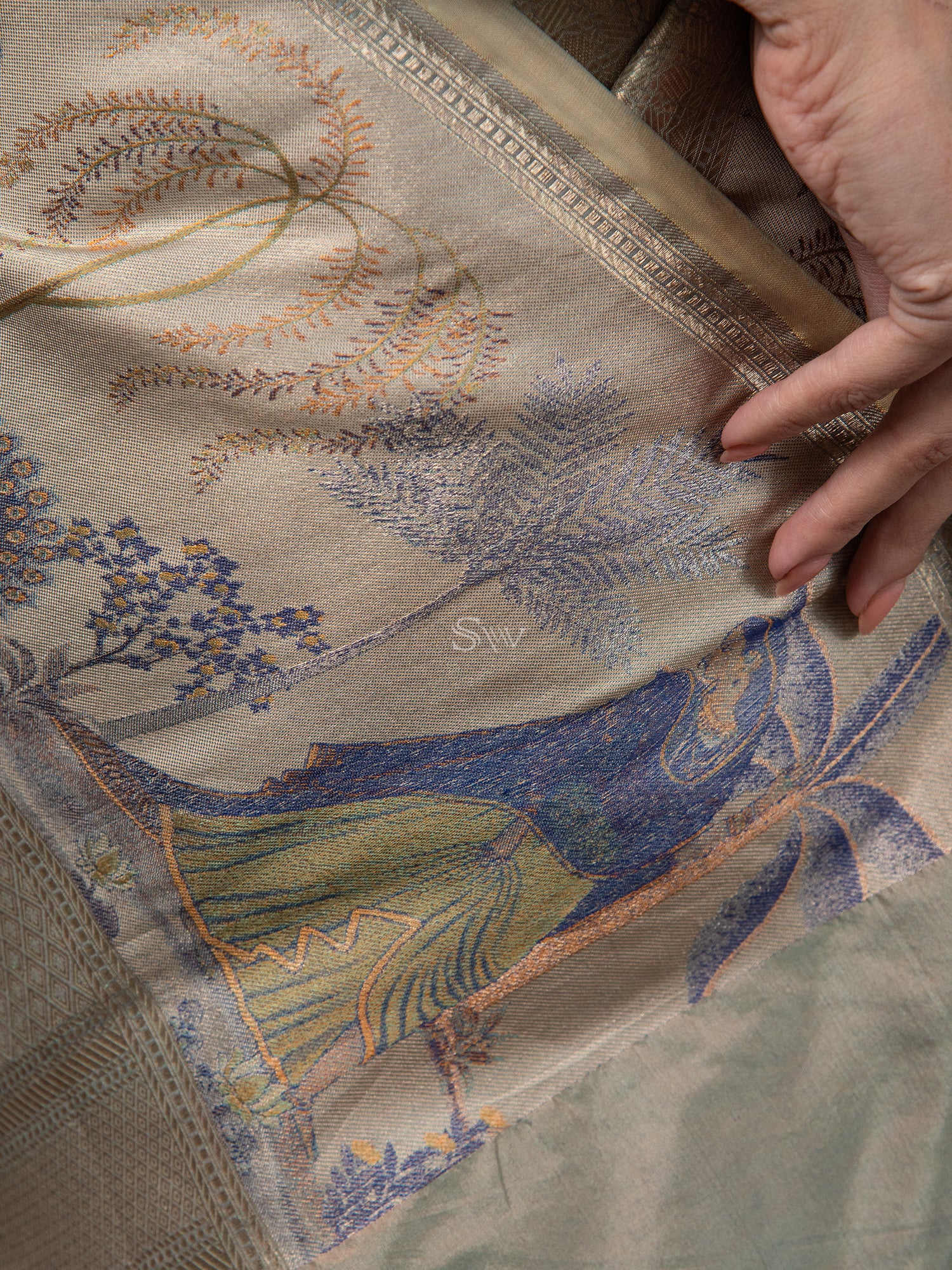 - SW Assurance - With vows to sustainable fashion, this pure silk handloom product from Banaras is a masterpiece involving 219 hours of brilliance & sheer endeavour of our creative artisans. We pledge to cease child labour