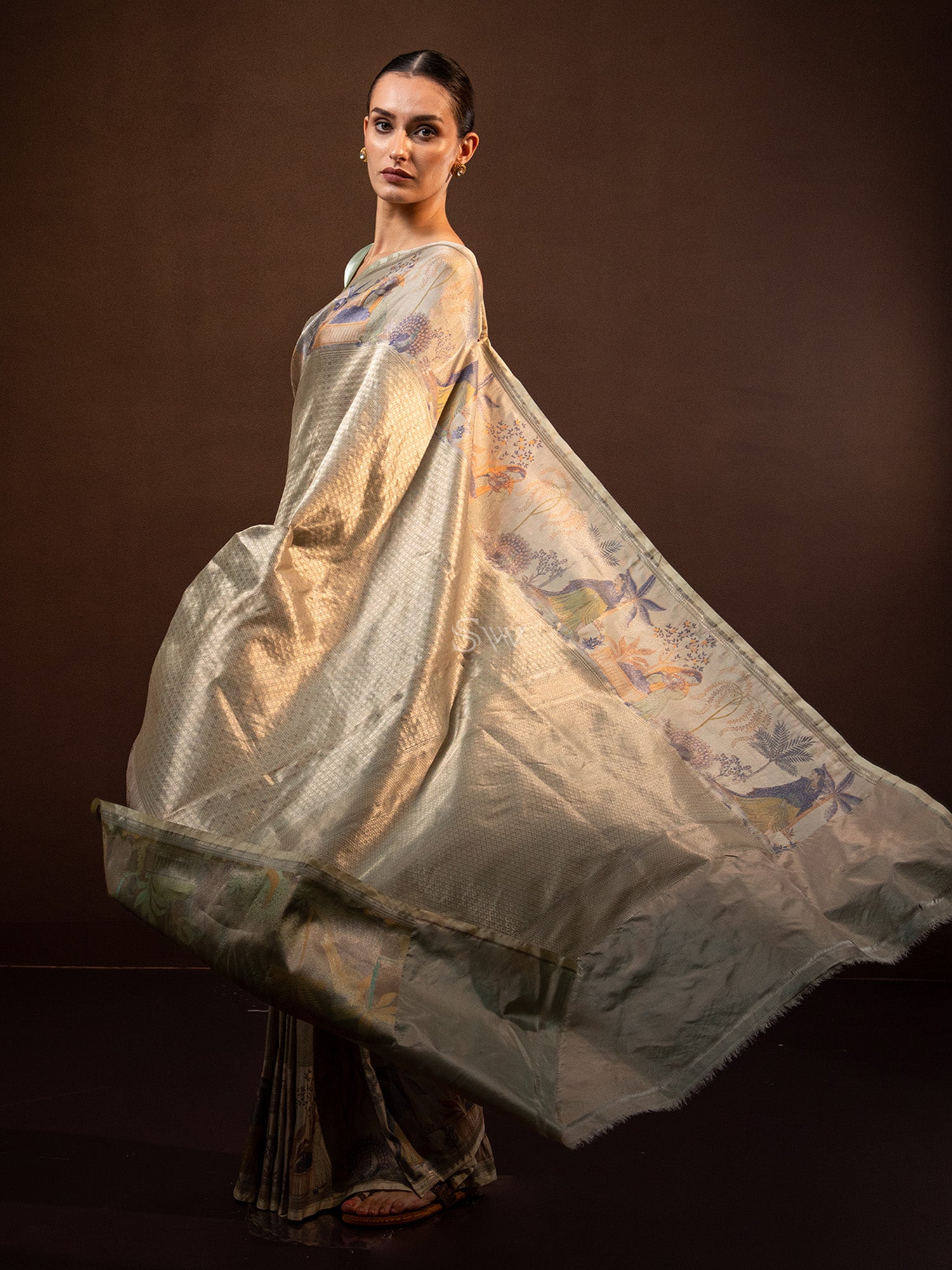 Sacred Weaves presents splendid tissue katan silk sarees with beautifully handwoven floral motif that inspire your soul. The gold pallu adds an elegant touch to this luxurious silk saree. Highlight your unique style and grace with this stunning tissue katan silk saree.