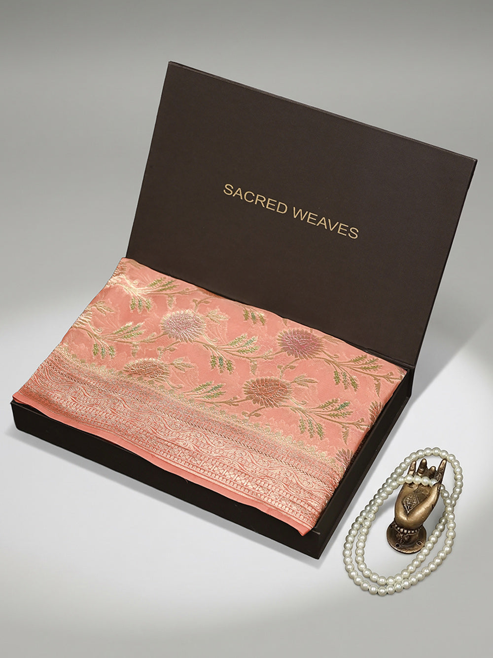 Pastel Peach Rangkat Jaal Khaddi Georgette Handloom Banarasi Saree