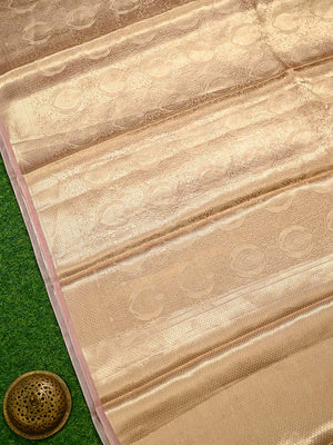 Directly from the core of Banaras, we present a handwoven pastel pink Banarasi saree for young ladies who will love to wear flowy Banarasi Tissue Brocade sarees that embody tastefulness and exhibits an old-world appeal. Wearing a Banarasi Silk Saree resembles saying something of class, legacy, and prosperity.