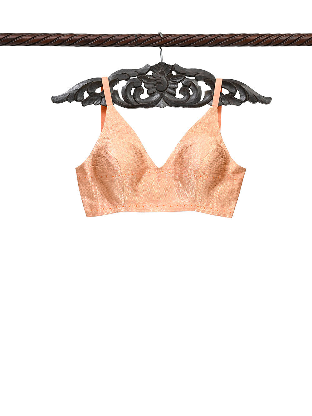 Peach Meenakari Uppada Silk Banarasi Ready-Made Blouse