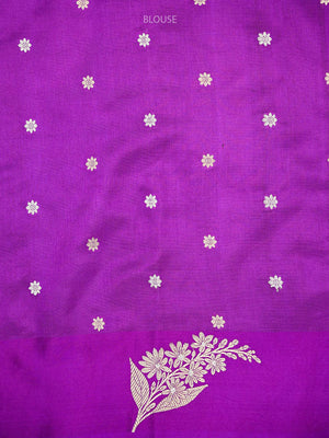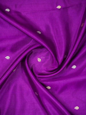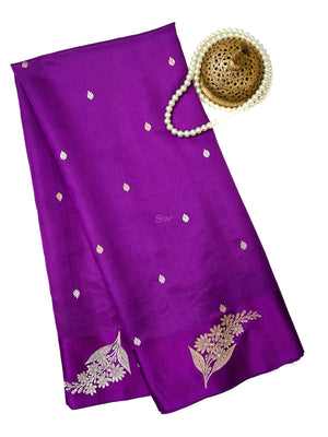 This elegant purple katan silk saree offers a lightweight and comfortable drape, making it an ideal choice for festivals and weddings. It features exquisite floral motifs along the border and a striking gold zari pallu, blending traditional craftsmanship with understated sophistication. The saree’s vibrant hues and minimalistic design create a graceful, refined look suitable for special occasions.