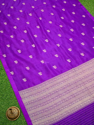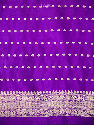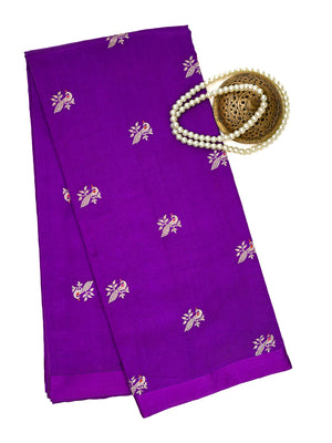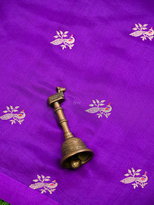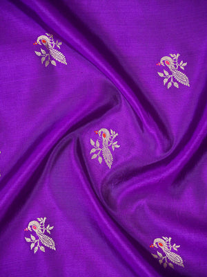 This elegant purple katan silk saree offers a lightweight and comfortable drape, making it an ideal choice for festivals and weddings. It features exquisite animal motifs along the border and a striking gold zari meenakari pallu, blending traditional craftsmanship with understated sophistication. The saree’s vibrant hues and minimalistic design create a graceful, refined look suitable for special occasions.