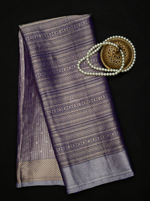Half and Half Tissue Brocade Saree. This contemporary saree beautifully blends tradition with modern design. The upper half features elegant stripes, while the lower half showcases a full brocade weave with geometric patterns. Perfect for those who appreciate modern yet sophisticated style. The tissue brocade fabric offers a lightweight drape with subtle shimmer, a versatile choice that bridges classic elegance and contemporary fashion.