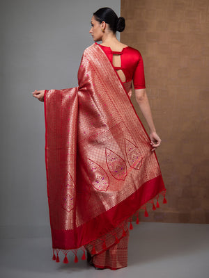 Red Meenakari Silk Brocade Handloom Banarasi Saree