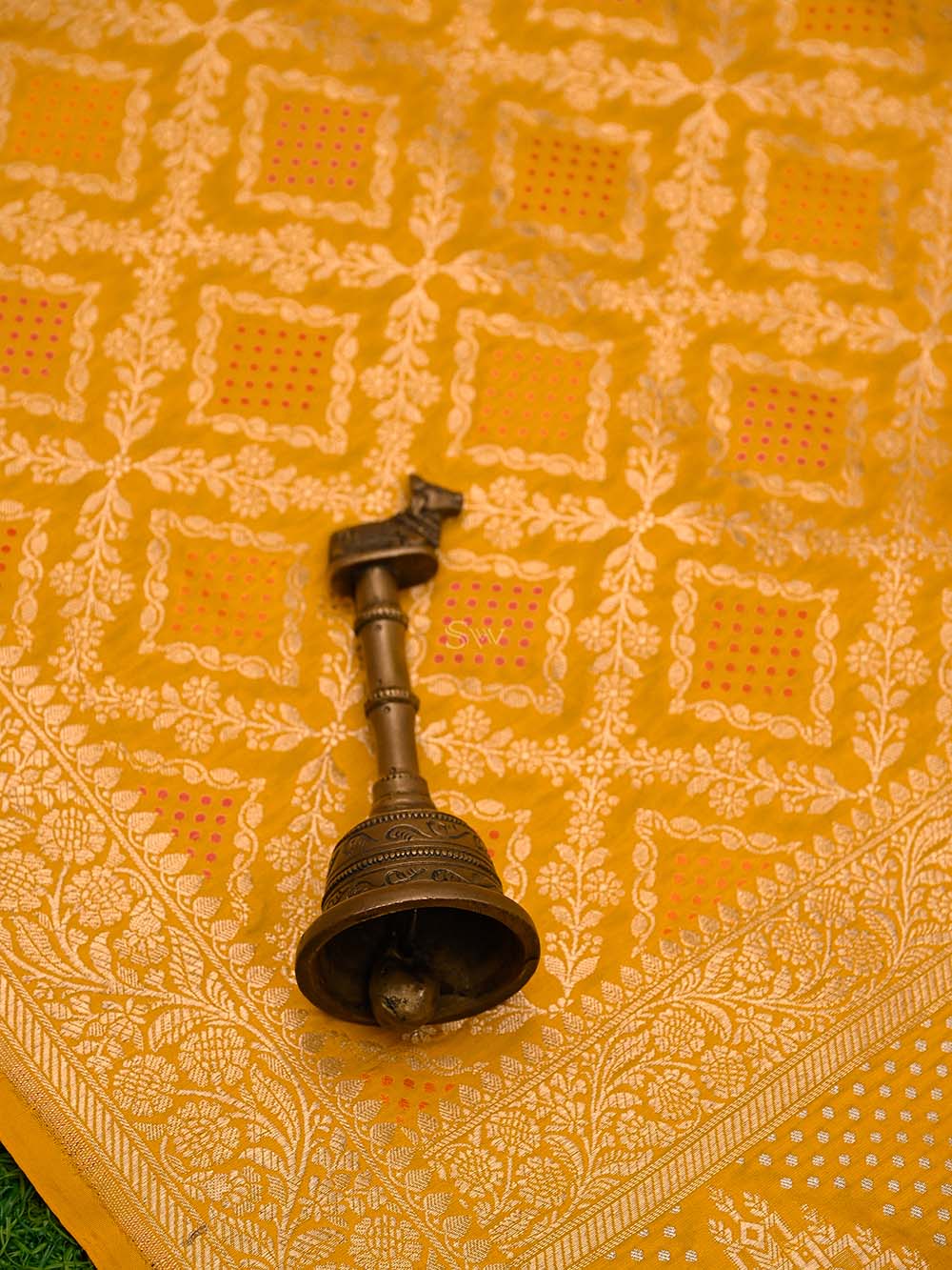 Yellow Booti Katan Silk Handloom Banarasi Suit